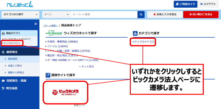 ビックカメラ法人向けオンラインストアが新たにご利用可能になりました! AZ-COM会員の皆様へ 2025年9月3日(水)から AZ-COM共同購入サイト(事務・オフィスサイト:べんりねっとL)で ビッグカメラ法人サイトの商品が購入可能になりました! 皆様の更なるご利用を お待ちしております! 【ビックカメラ法人サイトへのアクセス方法】 「べんりねっとL」にアクセス後に以下の手順でアクセスできます。