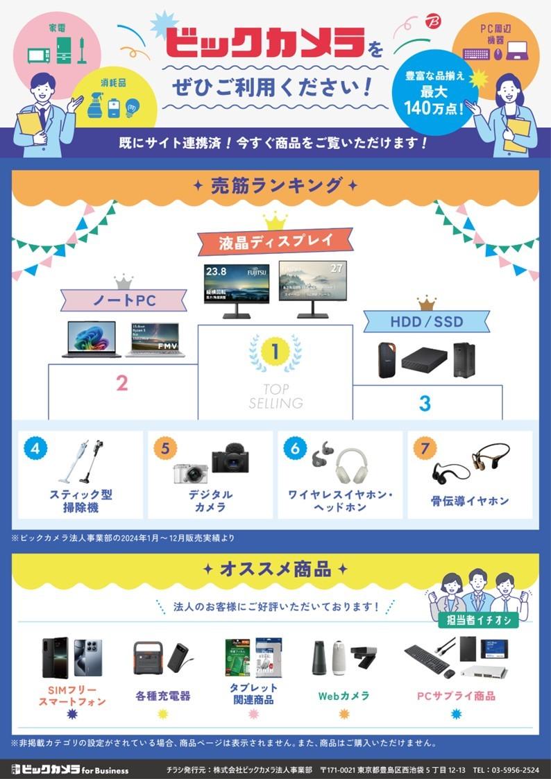 ビックカメラ法人向けオンラインストアが新たにご利用可能になりました! AZ-COM会員の皆様へ 2025年9月3日(水)から AZ-COM共同購入サイト(事務・オフィスサイト:べんりねっとL)で ビッグカメラ法人サイトの商品が購入可能になりました! 皆様の更なるご利用を お待ちしております! 【ビックカメラ法人サイトへのアクセス方法】 「べんりねっとL」にアクセス後に以下の手順でアクセスできます。